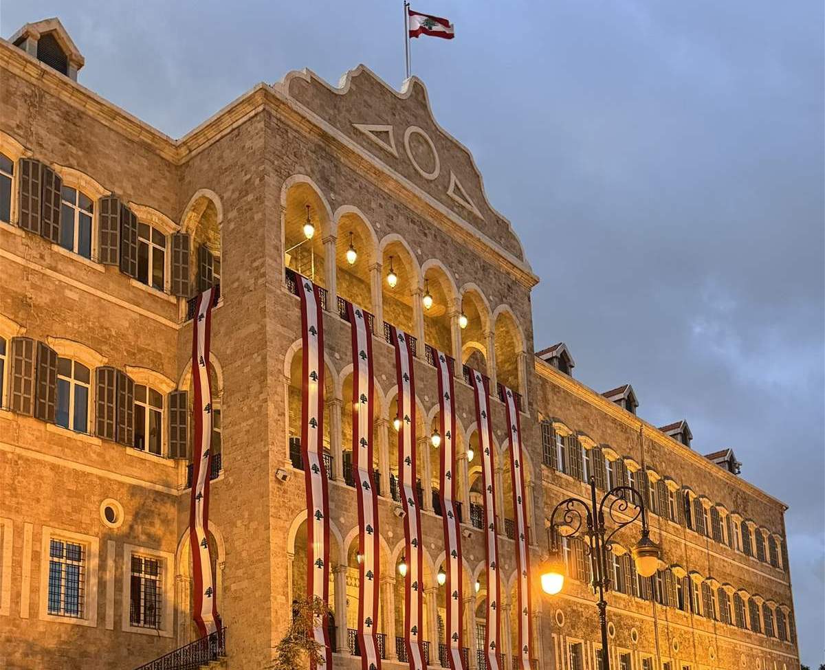 السراي الحكومي في لبنان مضاءً بمناسبة عيد العلم (2024)