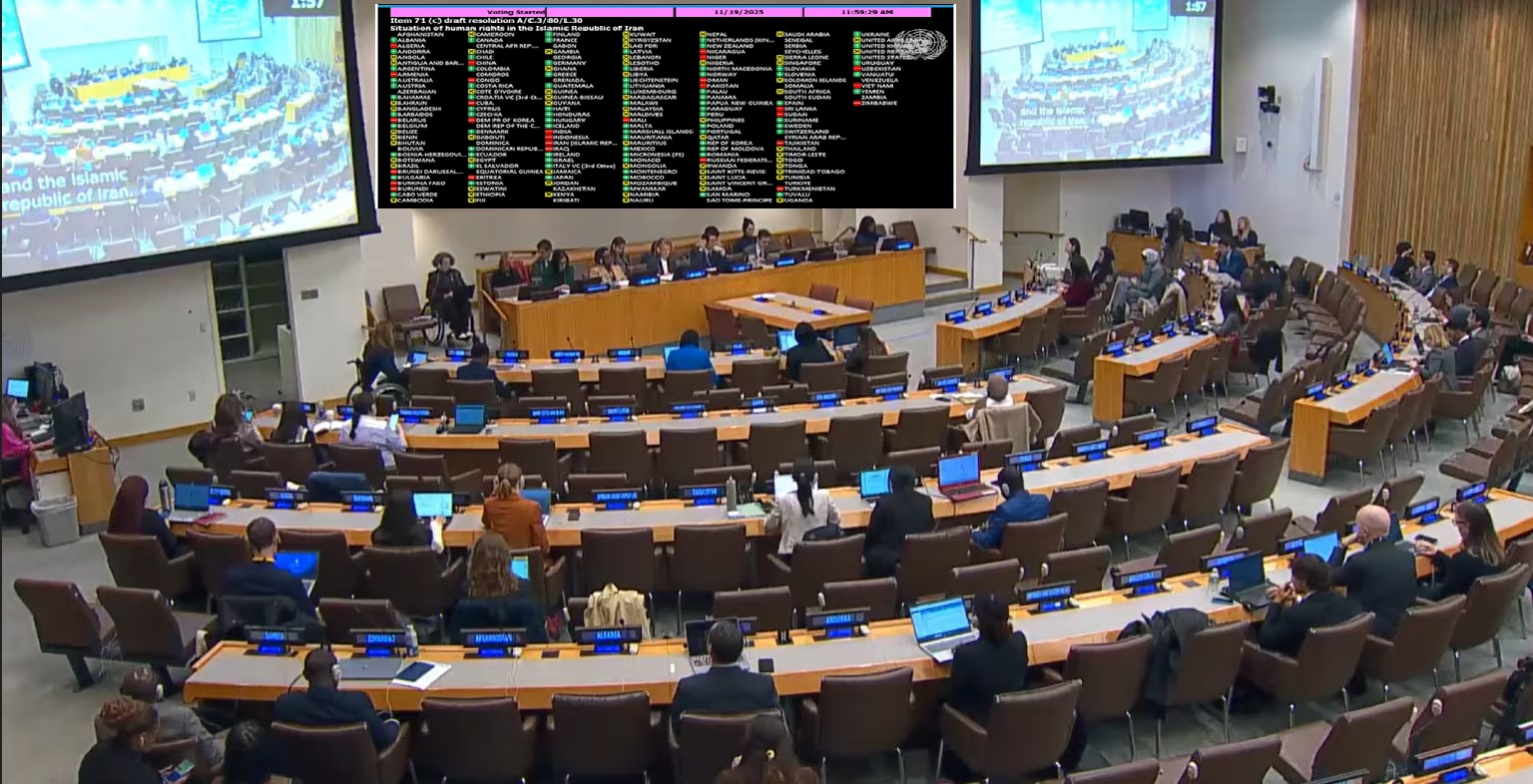 اعتمدت اللجنة الثالثة للجمعية العامة للأمم المتحدة في 19 نوفمبر 2025 قرارها الثاني والسبعين الذي يدين الانتهاكات الجسيمة والمنهجية لحقوق الإنسان في إيران. لا يمثل هذا القرار مجرد حدث سياسي عابر، بل هو ضربة عالمية كبرى لنظام ظل يعتمد على الحصانة الممنهجة لأكثر من أربعة عقود.