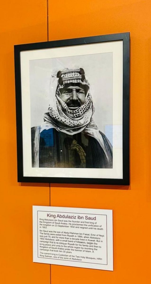 يشتمل المعرض على صور فوتوغرافية نادرة باللونين الأبيض والأسود، لكن المفاجأة الأكبر تكمن في وجود بعض الصور التي يُعتقد أنها أول صور ملونة التقطت في السعودية على الإطلاق. بل إن إحدى هذه الصور، التي تجمع الملك عبد العزيز مع زوج الأميرة البريطانية ويظهر فيها أيضاً الأمير (الملك لاحقاً) فيصل والأمير (الملك لاحقاً) عبد الله بن عبد العزيز، قد تكون أول صورة ملونة معروفة للملك المؤسس.