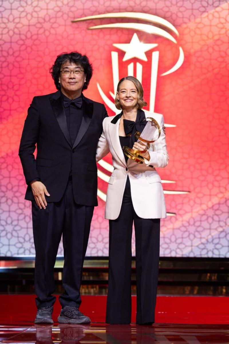 لخص المخرج الكوري الجنوبي لسيرة وتجربة جودي فوستر، وهو يقدمها لجمهور المهرجان، بأربع كلمات: "الكاتبة والمخرجة والممثلة العظيمة"، بعد أن كان مهد لذلك، قائلا: "غالبًا ما نشهد في الأفلام قرارات عظيمة، تبدو بديهية للوهلة الأولى، لكنها تكشف عن براعتها لاحقًا. في فيلم "صمت الحملان" لجوناثان ديمي، عندما تتحدث كلاريس ستارلينغ عن صدمة طفولتها، لا ننتقل أبدًا إلى مشهدٍ استعادي. لا نرى مزرعة ولا خرافًا تصرخ. كل ما نراه هو وجه جودي فوستر يملأ الشاشة. نرى أداءها المذهل وهي تسترجع صرخات تلك الخراف الصغيرة. هذا مثال على قرار عظيم. وفي فيلم "اتصال" لروبرت زيميكس، عندما تدخل الدكتورة إيلي أروواي الثقب الدودي وتشهد حدثًا سماويًا يفوق الخيال، لا نرى ذلك الحدث إلا لوهلة قصيرة. ما يبقى على الشاشة أطول هو وجه جودي فوستر المغمور بالدهشة. لقد تأثرنا ليس بالمشهد الكوني نفسه، بل بملامحها وهي تشهد حدوثه أمامها. هذا أيضًا كان قرارًا عظيمًا. وفي فيلم "سائق الطاكسي" الأسطوري، كان القرار العظيم ببساطة هو اختيار جودي فوستر للدور. ولا حاجة لأن أقول المزيد، فوجود جودي فوستر كان الأساس الذي بُني عليه الفيلم (مع خالص اعتذاري للنجم الكبير روبرت دي نيرو). إن القرارات المذكورة سابقًا التي اتخذتها تلك الأفلام كانت أيضًا قرارات اتخذتها جودي نفسها. فهي لم ترضَ بأن تكون مجرد "مختارة". كفنانة، سعت إلى أن تختار هي لنفسها. وكواحدٍ من معجبيها، أتطلع لرؤية المزيد من خياراتها على الشاشة".