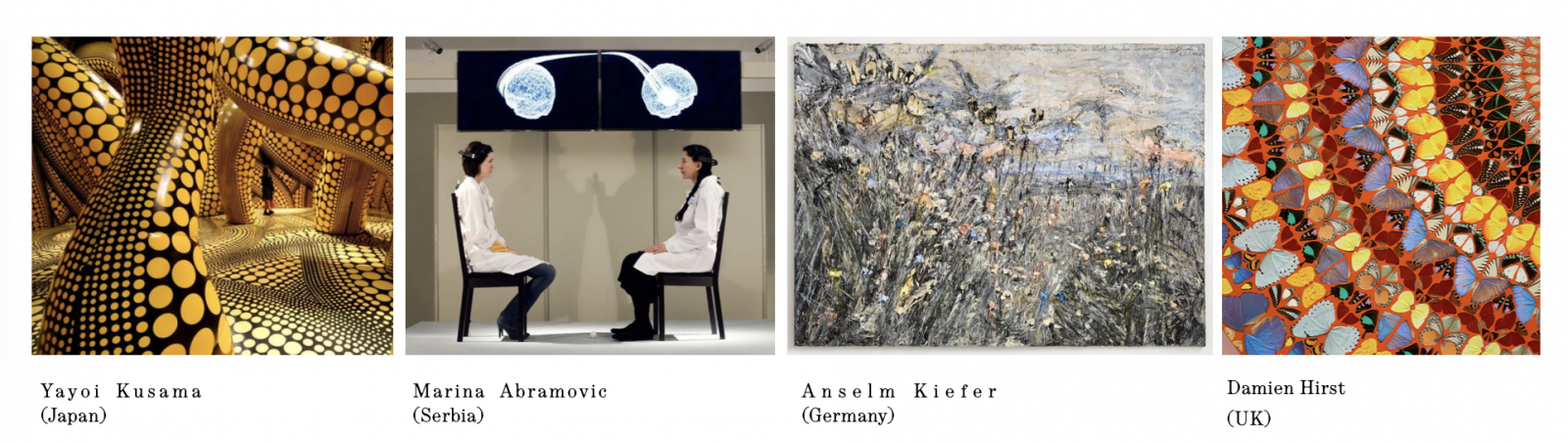 يضم المعرض قائمة مقترحة من الفنانين العالميين البارزين الذين "لديهم رابط مع رواية الذاكرة"، وهم: يايوي كوساما (اليابان)، مارينا أبراموفيتش (صربيا)، أنسيلم كيفر (ألمانيا)، داميان هيرست (بريطانيا)، جانيت إشلمان (الولايات المتحدة)، ودان فو (فيتنام).