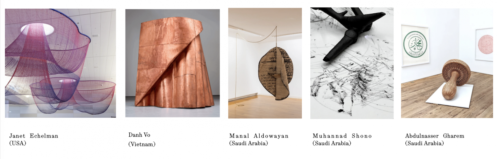 كما يشارك فنانون سعوديون من أبرز الأسماء، بينهم: منال الدويان، مهند شونو، عبدالناصر غارم، فهد الغثامي، عبيد السافي، ومعاذ العلفي. ويضاف إليهم الفنان السوري مذهر حسن، والإيطالي ماركو كونتي سيكيتش.