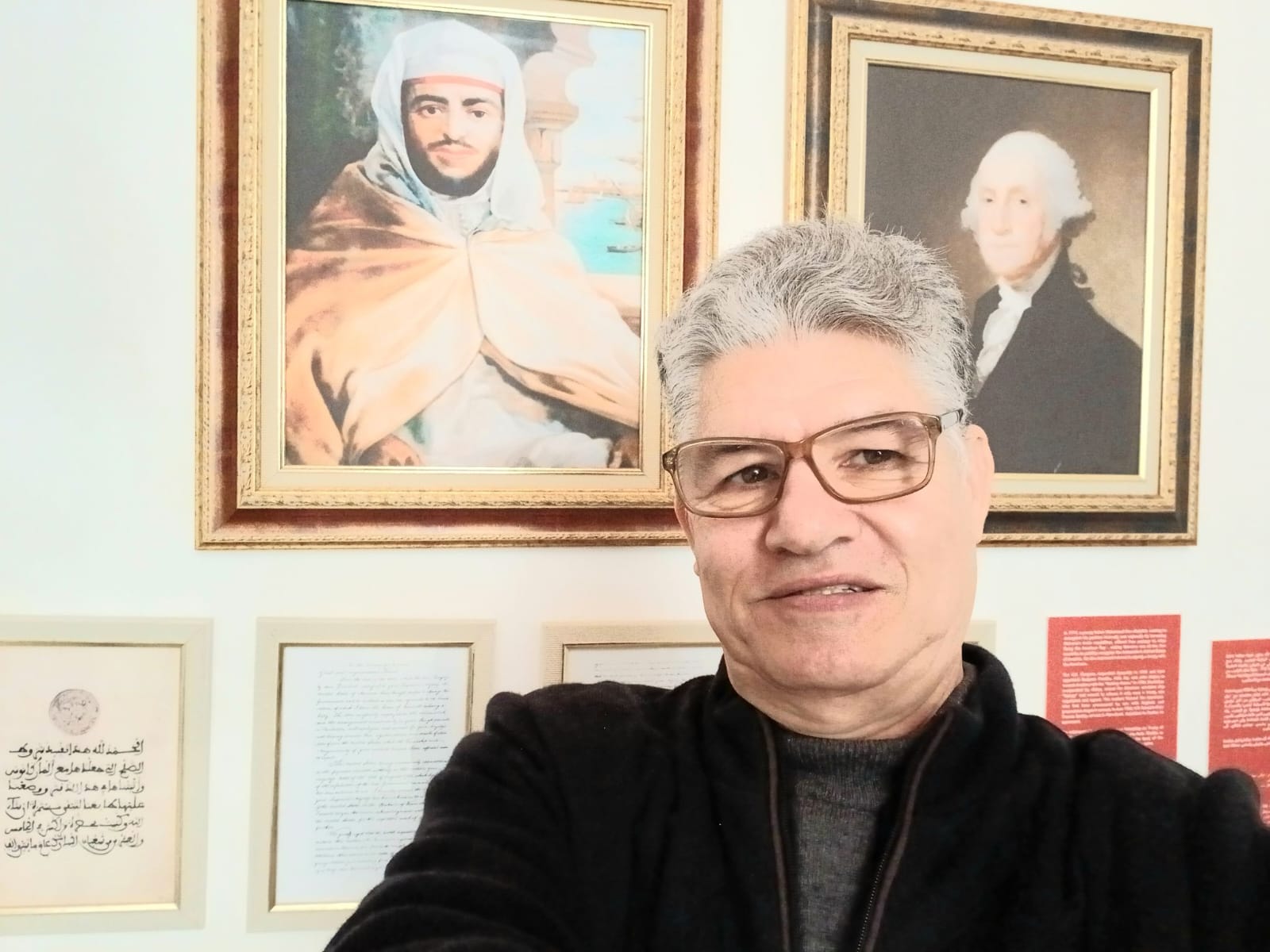 مما نقرأ على ظهر غلاف رواية الحمدوشي، الصادرة في 2020 عن منشورات دار التوحيدي: "في مدينة مكناس المغربية، صدر مرسوم سنة 1777 يعترف باستقلال أميركا بعد حرب الست سنوات ضد بريطانيا. في ذلك الوقت كانت أميركا تتكون من 13 ولاية فقط، وقد صادق الكونغرس الأميركي على هذه المعاهدة يوم 18 يوليو 1787. بعد ذلك بعث جورج واشنطن رسالة شكر إلى محمد الثالث يشكره على هذا الاعتراف. الرسالة تحمل توقيع كل من جون آدامز وتوماس جيفرسون وهما معا انتخبا رئيسان لأميركا بعد جورج واشنطن.. وبذلك فهذه الوثيقة هي الوحيدة التي تحمل توقيع ثلاثة رؤساء أميركيين، وهي تعد أقدم اتفاقية في تاريخ الولايات المتحدة.. وهي تعد ثاني كنز وطني لديهم بعد وثيقة استقلالهم".