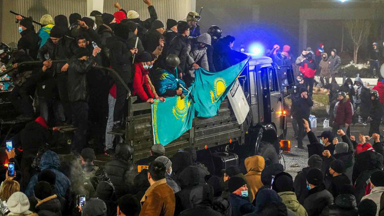 الماتي (كازاخستان): قتل "عشرات" المتظاهرين بأيدي الشرطة وجرح نحو ألف آخرين ليل الأربعاء/ الخميس في كازاخستان أثناء محاولتهم الاستيلاء على مبان إدارية في إطار تظاهرات وأعمال شغب بدأت احتجاجا على زيادة أسعار الغاز وما زالت متواصلة.