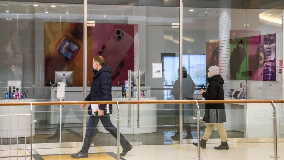 وعلمت بي بي سي أن العلامات التجارية مرتبطة باتفاقيات امتياز قانونية، مما يجعل من الصعب عليها إزالة اسمها من المتاجر ومراكز التسوق في روسيا.