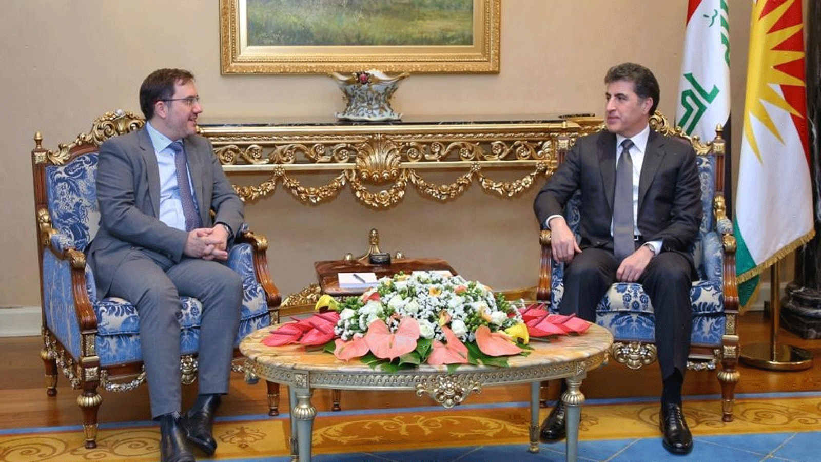 فقد بحث رئيس إقليم كردستان العراق نيجيرفان بارزاني في أربيل اليوم مع مارك برايسون السفير البريطاني في العراق يرافقه وفد سياسي وعسكري فرص تجاوز الانسداد السياسي الذي يشهده العراق وعجزه عن تشكيل الحكومة الجديدة بعد 7 أشهر من انتخاباته البرلمانية المبكرة.