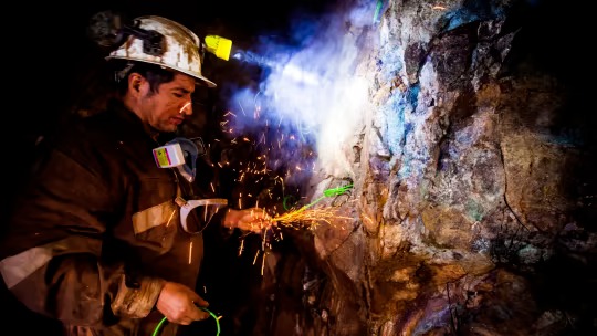 عامل في منجم كيارا للنحاس بجنوب أنتوفاغاستا، في تشيلي