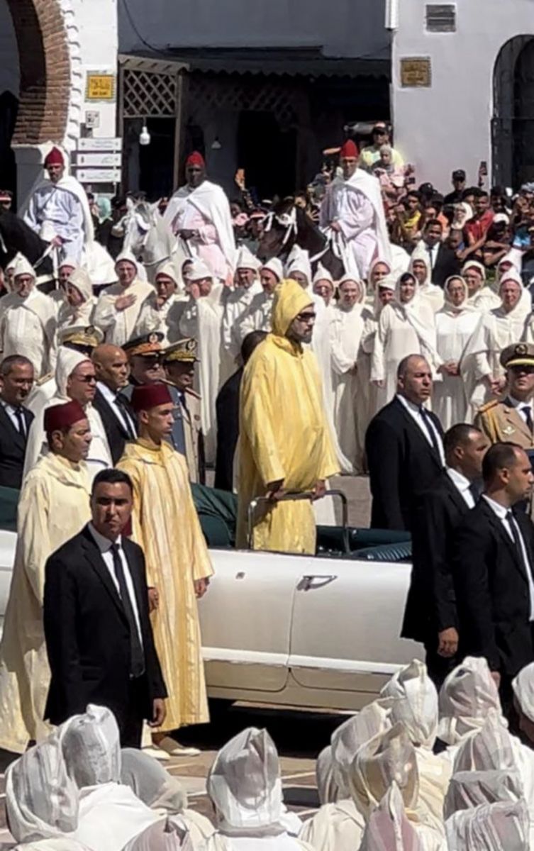 الملك محمد السادس لدى ترؤسه حفل الولاء في تطوان ويبدو الى جانبه