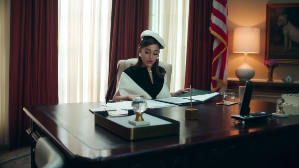 الفيديو ، الذي تم طرحه في وقت مبكر من صباح أمس الجمعة 23 أكتوبر، يفتتح مشاهده على غراندي في قاعة اجتماعات في البيت الأبيض مرتديًة زيًا مستوحى من جاكي كينيدي (بما في ذلك قبعة من حقبة الستينيات وقفازات). ويبدو فريقها عائلي فهي محاطة بأكثر مستشاريها الموثوق بهم، بما في ذلك الأم جوان غراندي، والصديقة والمتعاونة تيلا باركس، ونيجا شارلز الكاتبة المشاركة كتابة الاغنية، وصديقة طفولتها المفضلة ميشا لامبرت. يحصل العديد من كلاب غراندي أيضًا على أدوار البطولة في الفيديو القصير حيث يسيرون في شارع بنسلفانيا ويعجبون بصورهم الخاصة التي تتدلى في جميع أنحاء البيت الأبيض.