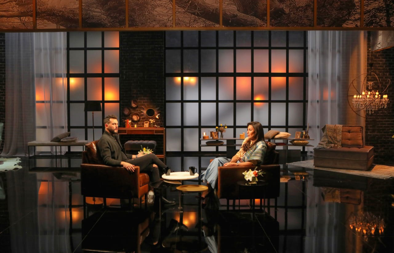 يفتح النجمان قلبيهما لبعضهما البعض ليتحدثان عن اللقاء الأول مع شريك العمر، من اللحظة الأولى إلى اللحظة التي اعترفا بحبهما ثم دخولهما قفص الزوجية. وينتقلان بعدها إلى الحديث عن تجربة الأبوة والأمومة ومسؤولياتها، معرّجين على أصعب اللحظات التي يعيشانها مع أبنائهما، بحكم الانشغالات الفنية والتصوير لأوقات طويلة. وتتوجّه أمل إلى سامر بسؤال عن أسباب غيابه عن الأعمال العربية المشتركة، وخاصة الجماهيرية منها، وهل يعود ذلك إلى قلة الفرص أم هو خيار شخصي؟ ويسأل سامر عما إذا كان لأمل رغبة في بطولة أعمال درامية وسينمائية جزائرية، وهل تعتبر أن غيابها عن أعمال بلدها تعتبره تقصير من جانبها.
