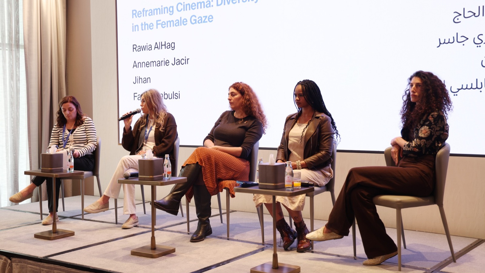 وشهدت الجلسة مشاركة عدد من المخرجات البارزات، بينهن فرح النابلسي (بريطانية-فلسطينية)، مخرجة فيلم الهدية، وراوية الحاج (سودانية)، مخرجة الفيلم الوثائقي الخرطوم، إلى جانب آن ماري جاسر (فلسطينية)، مخرجة فلسطين 36، وجيهان (ليبية-سورية)، مخرجة بابا والقذافي.