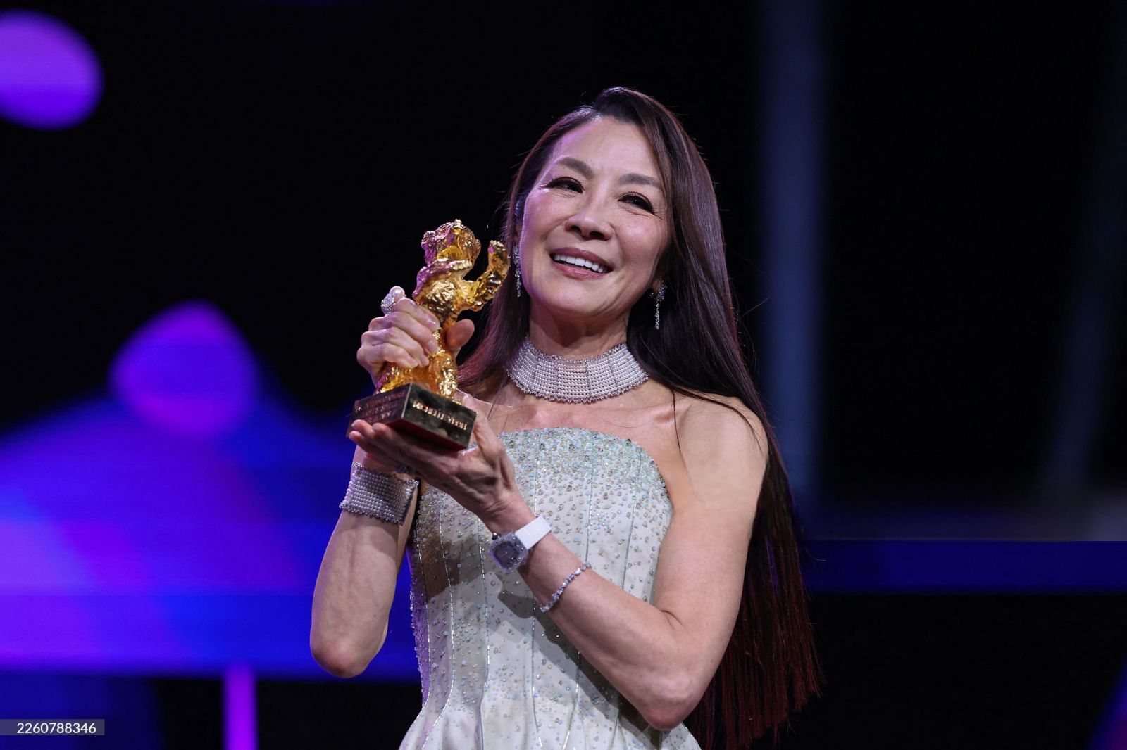 اللحظة الأبرز في الحفل كانت تكريم الممثلة العالمية ميشيل يوه بالدب الذهبي الفخري، الذي سلّمها إياه المخرج الأميركي شون بيكر.