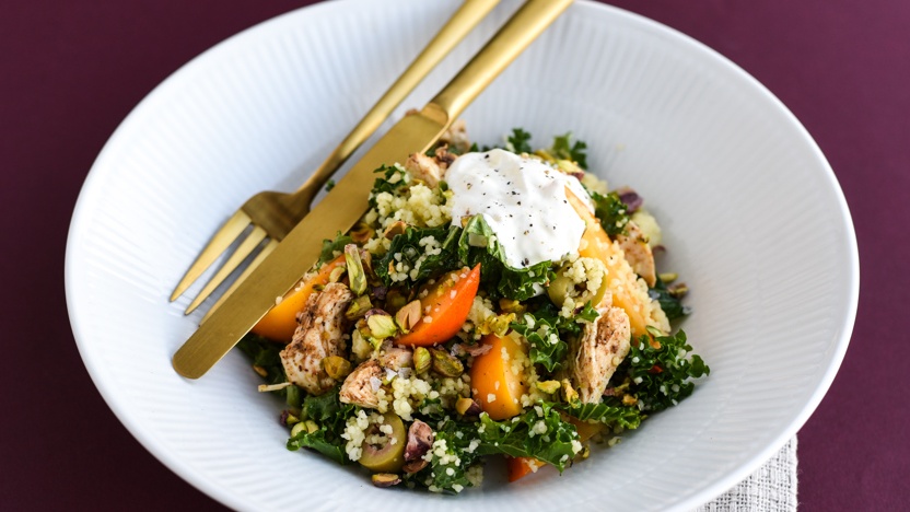 دجاج مع الملفوف الأخضر والبرغل وفاكهة الكاكي