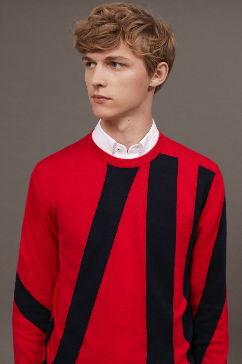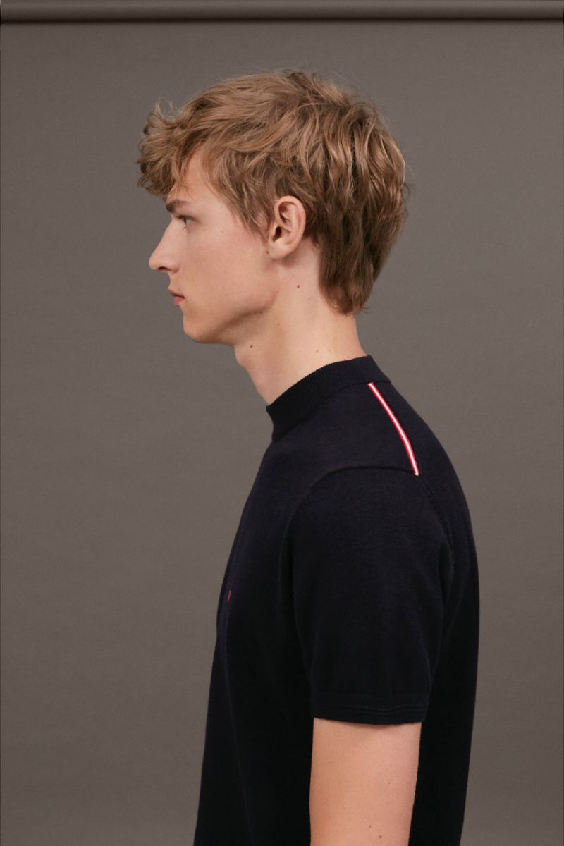 كما ضمت تلك التشكيلة الجديدة مجموعة بدل يمكن ارتدائها مع مجموعة منوعة من قطع التريكو مثل تي شيرتات وسترات مرتفعة الرقبة وتركت بدون أزرار. واللافت أيضا في تلك التشكيلة هو أنها لم تهتم باستخدام ربطات العنق على الإطلاق.