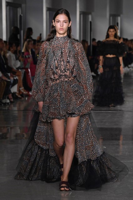 حرص المصمم غيامباتيستا فالي على تقسيم العرض الذي خصصه لموسم ربيع 2019 إلى فصلين : أولهما تم تخصيصه للإطلالات العاجية المستوحاة من الفنانة يوكو أونو، وثانيهما بدت فيه تصميمات القطع بصورة أكثر غرابة. وعلَّق فالي على ذلك بقوله "تعتبر يوكو أونو من أيقونات الفن ليس بسبب أناقتها فقط، وإنما بفضل حالتها الذهنية كذلك. وهي امرأة مستقلة وتتمتع بروح حرة وتمتلك شخصية جميلة".
