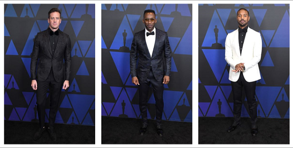 حضر النجوم أرمي هامر، ماهرشالا علي ومايكل بي جوردان حفل توزيع جوائز Governors Awards الذي أقيم قبل بضعة أيام في لوس أنغلوس بإطلالات مميزة من إبداع دار إرمنيجيلدو زينيا Ermenegildo Zegna. فظهر أرمي هامر بجاكت بني من الصوف والحرير ومزود بزر واحد وعليه طباعات زهرية، قميص أسود وسروال بدلة سهرات أسود. وظهر ماهرشالا علي بجاكت أسود وكحلي من الصوف والحرير المطبوع ومزود بزر واحد، قميص أبيض، سروال بدلة سهرات كحلي وربطة عنق على شكل قوس. وظهر مايكل بي جوردان بجاكت من صوف أصفر شاحب مزود بزر واحد، قميص أسود، سروال بدلة سهرات أسود.