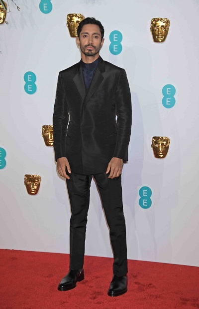 تألق الممثل ومغني الراب البريطاني، ريز أحمد، بإطلالة من توقيع دار دانهيل على هامش حضوره حفل بافتا، الذي أقيم قبل أيام، حيث ظهر بجاكت حرير أسود نصف ملفوف، سروال كينسينغتون أسود، قميص حرير مزود بياقة على شكل طوق وحذاء أسود برقبة مزودة بسوستة جانبية من تشكيلة الدار لخريف وشتاء 2019.