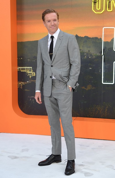 تألق الممثل البريطاني، داميان لويس، ببدلة ماي فاير رمادية أحادية الصدر، قميص أبيض كلاسيكي، ربطة عنق، ماسك معدني لربطة العنق وحذاء Duke derby خلال حضوره العرض الأول لفيلم Once Upon A Time In Hollywood في لندن، وهي الإطلالة التي اختارها من دانهيل وأضافت كثيراً لرونقه.