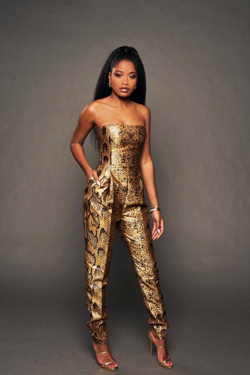 ارتدت الممثلة الأميركية، كيكي بالمر، بدلة جمبسوت مصنوعة من جاكار حريري ذهبي اللون مزين بنقشة جلد الثعبان من تشكيلة روبرتو كافالي لخريف وشتاء 2019/ 2020 خلال خضوعها لجلسة تصوير "فوتوكول" للعرض الأول لأحدث أفلامها "HUSTLERS" ضمن فعاليات مهرجان تورنتو السينمائي الدولي لعام 2019.