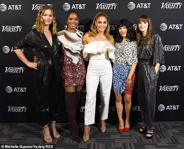 وارتدت النجمة، انديا مور، فستاناً شفافاً من التول ومطزر بأكمله بحبات خرز وترتر من اللؤلؤ من تشكيلة روبرتو كافالي لخريف وشتاء 2019/ 2020 خلال حضورها ومشاركتها في لجنة تحكيم مجلس مصممي الموضة في أميركا بمدينة نيويورك.