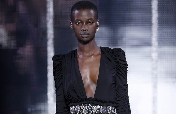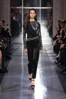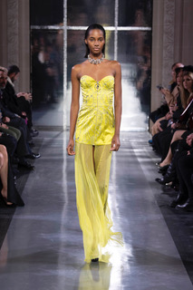 استوحت التشكيلة الجديدة التي أطلقها دار أزارو Azzaro من ماضيها، وبدت كل القطع زاهية ومتألقة بشكل كبير، فهذه سمة من السمات التي تشتهر بها الدار بشكل عام. وشَكَّل الخرز والترتر أشكال زهور مثيرة، فساتين متلألئة وجواكت بدل مميزة.
