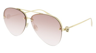 تُتمِّم الجماجم الأيقونية، التي توحي بالجواهر، الأشكال المُبتكرة والهياكل دون إطارات المُرصعة بأحجار الراين الصغيرة جداً، تعززها العدسات المُثبتة بمشبك لاستخدام مزدوج. وحفاظاً على روح التمكين لدى ألكسندر ماكوين، تضمن الإطارات الضخمة إطلالة جريئة مع تصاميمها المخرمة والحواف الرفيعة المصنوعة من النايلون واللمسات الناعمة من المينا.