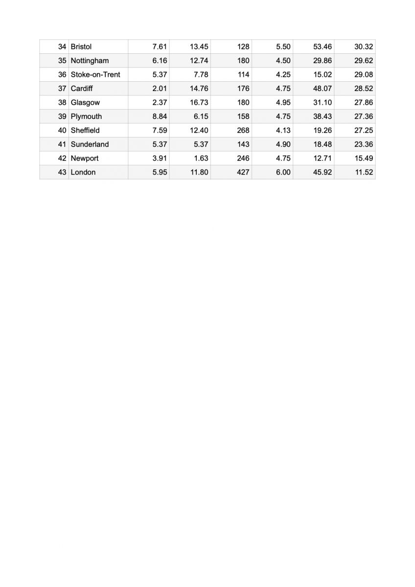 وفي المحصلة النهائية، سجلت لندن أدنى درجة (11.52 نقطة) مقارنة ببرايتون (75.08 نقطة). وتكشف البيانات عن فجوة سعرية هائلة؛ حيث يبلغ متوسط سعر "الباينت" في لندن 6 جنيهات إسترلينية، بينما ينخفض في مدينة مثل "سانت هيلينز" (المرتبة 11) إلى 3 جنيهات فقط، وهو ما يبرز دور "اقتصاد الترفيه" في توجيه بوصلة السائحين لعام 2026.