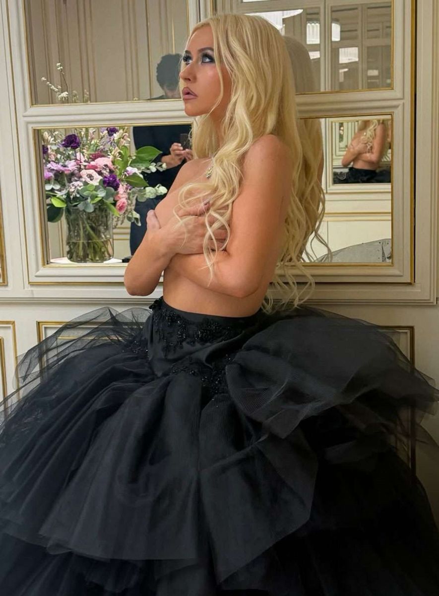 في سلسلة الصور التي نُشرت الخميس، ظهرت كريستينا أغيليرا عارية الصدر، مرتدية فقط قلادة شوبارد اللافتة للنظر من مجموعة المجوهرات الراقية.