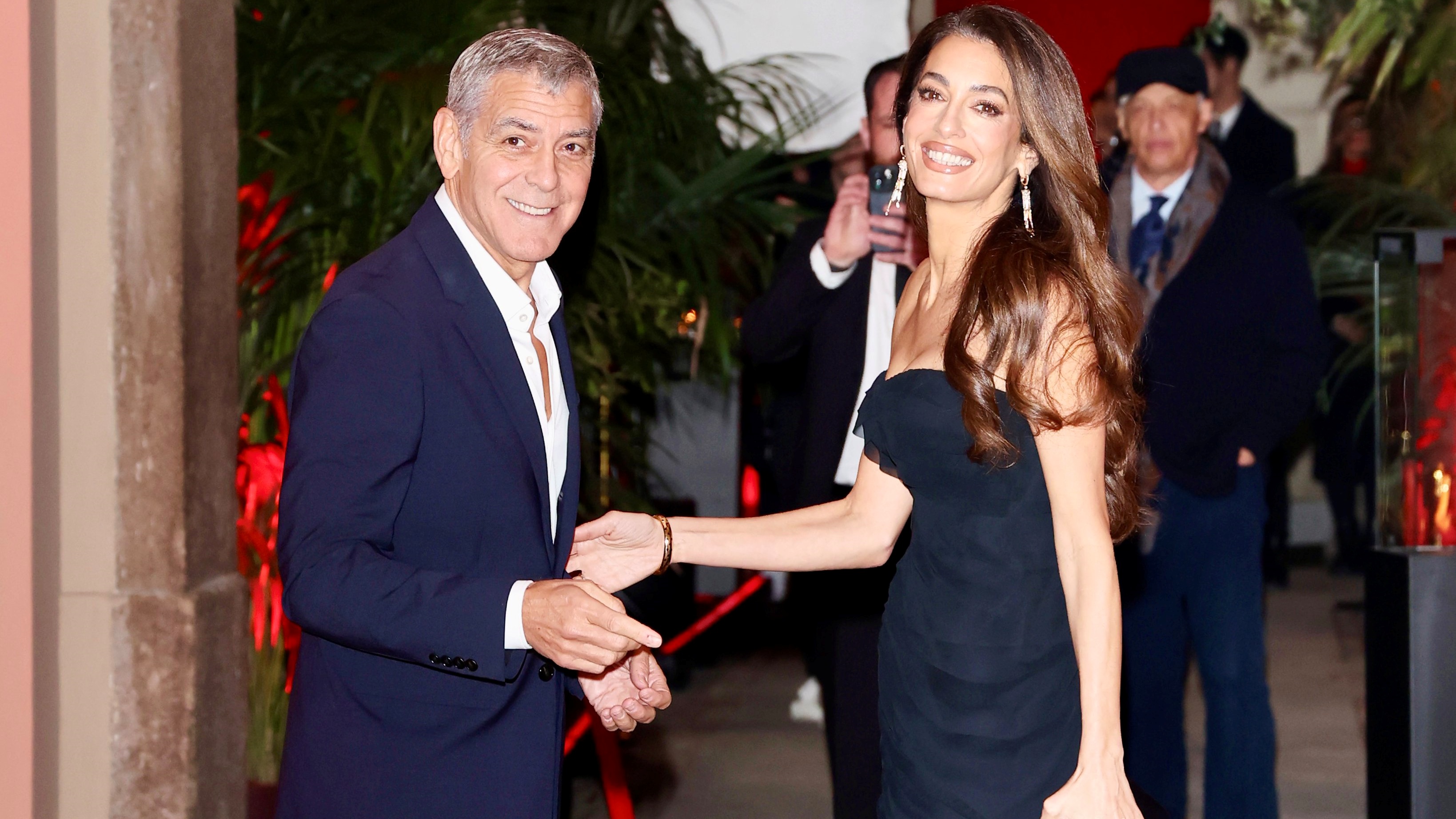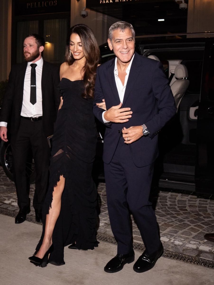 أكمل جورج كلوني إطلالتها ببدلة داكنة كلاسيكية منسقة مع قميص مفتوح الياقة، مضيفاً ثقة مريحة إلى الأجواء الرسمية، وأكمل الإطلالة بساعة يد فاخرة، في إشارة خفية إلى مضيف الأمسية.