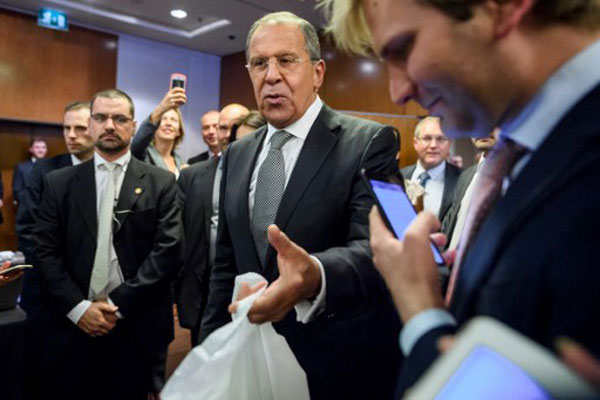 قدم وزير الخارجية الروسي سيرغي لافروف ليل الجمعة السبت زجاجتي فودكا إلى الصحافيين الذين كانوا ينتظرون نتائج المفاوضات الماراثونية التي يجريها مع نظيره الأميركي جون كيري حول سوريا في جنيف.