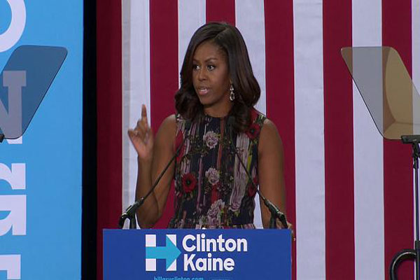 إيلاف من واشنطن: قالت ميشال "عندما أسمع أشخاصًا يقولون إنهم ليسوا متحمسين لا أوافقهم الرأي. هيلاري تلهمني!"، مشيرة إلى "ثباتها وشجاعتها وطيبتها". أضافت من جامعة جورج ميسون في فيرفاكس (فيرجينيا شرق) "لدينا فرصة لانتخاب إحدى أنسب الشخصيات للبيت الأبيض".