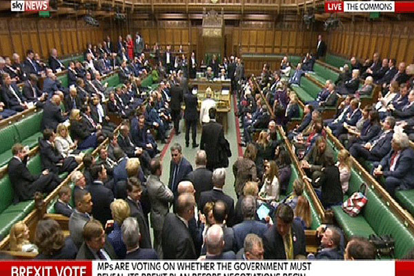 بعد 6 ساعات من النقاش المحتدم، يوم الأربعاء، حققت رئيسة الوزراء البريطانية تيريزا ماي نصرًا رمزيًا في مسألة خروج بلادها من الاتحاد الأوروبي عندما وافق مجلس العموم على عدم تأخير خططها لبدء محادثات الخروج بنهاية مارس المقبل.