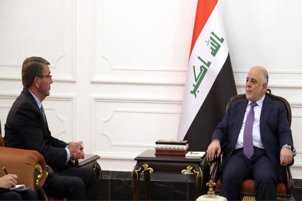 إيلاف: بحث رئيس الوزراء العراقي حيدر العبادي في بغداد الاحد مع وزير الدفاع الاميركي اشتون كارتر والوفد المرافق له سير عمليات "قادمون يا نينوى" لتحرير مدينة الموصل الشمالية من سيطرة تنظيم داعش "والانتصارات التي تحققها قواتنا البطلة في المعركة واعادة الاستقرار للمناطق المحررة وتدريب وتسليح القوات العراقية".. حيث اكد "ان معركة تحرير الموصل تجري بانسيابية كبيرة من جميع المحاور وقواتنا ملتزمة بالحفاظ على المدنيين وان النصر العسكري على عصابات داعش اصبح قريبا" كما نقل عنه مكتبه الاعلامي في بيان صحافي اطلعت على نصه "إيلاف".