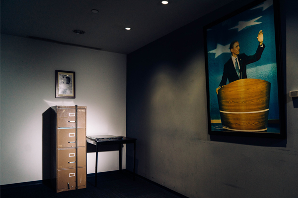 في الطابق السفلي من مقر اللجنة الوطنية الديمقراطية، تحت صورة جدارية لأوباما 2012، خزانة ملفات فقد مقبض درجها السفلي، وعلى الحائط مقال من جريدة واشنطن بوست 1972 يشير إلى أهمية قطعة الأثاث القديمة هذه: تم اعتقال معاون الأمن في الحزب الجمهوري و4 غيره بتهمة التجسس. أما أندرو براون، المدير التقني في D.N.C.، فقد ولد بعد ذاك الاقتحام الشهير، وبينما كان يخطط للانتخابات هذه السنة، كان مدركاً أنّ D.N.C. قد تصبح هدفاً للاقتحام مجدداً، فأكّد أنّ اللجنة محمية ضد المقتحمين السيبرانيين.