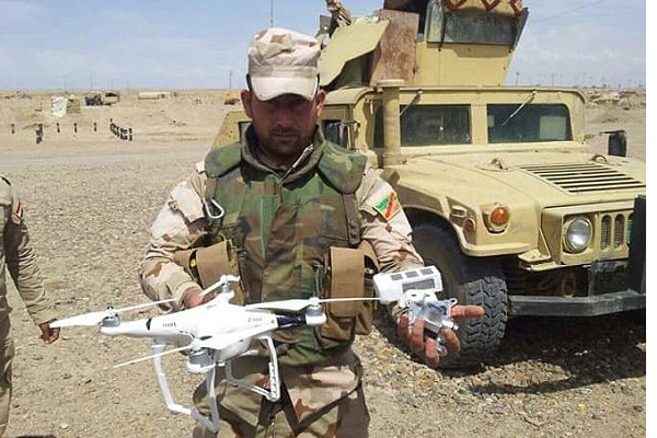 وتمكنت القوات العراقية من ضبط أنواع مختلفة من الطائرات الآلية الخاصة بتنظيم داعش، وبخاصة الطوافات المزودة بمراوح أربع تعينها على الارتقاء والتحليق في الجو. وتبين أن تلك الطائرات المضبوطة تحمل قنابل، منها قنابل يدوية وقذائف هاون.