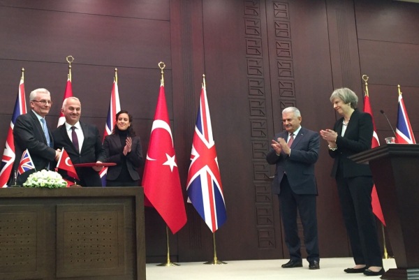 وقالت رئيسة الوزراء البريطانية تيريزا ماي التي تقوم حاليا بزيارة الى انقرة، كما جاء في البيان، "ان ذلك يشكل بداية علاقة تجارية جديدة ومعززة مع تركيا".