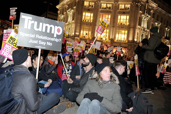 ووقع ما يربو على مليون شخص في بريطانيا على عريضة تطالب بإلغاء زيارة ترامب إلى بريطانيا، بسبب قراراته حول الهجرة واللاجئين، وتتزايد أعداد الموقعين على العريضة على نحو سريع منذ السبت الماضي. ويتطلب طرح عريضة ما للمناقشة في البرلمان البريطاني جمع مئة ألف توقيع.