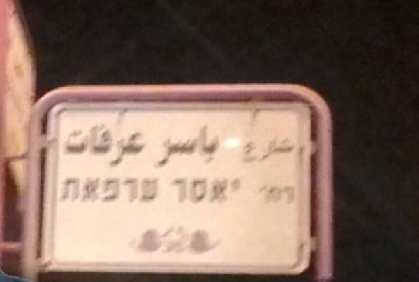 وكان تم تدشين شارع ياسر عرفات أخيرا في مدينة جت (شمال اسرائيل) حيث يعيش احفاد الفلسطينيين الذين لم يغادروا اراضيهم عند اعلان قيام اسرائيل في 1948. ويشكل هؤلاء حاليا 17,5 بالمئة من سكان اسرائيل.