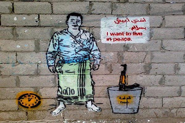 إيلاف: أقام الفنان اليمني مراد سبيع المعروف أيضًا بلقب "باكنسي اليمن"، والفنانة البريطانية ليزا ماري غيبس، الفائزة بجائزة كبيرة فعاليات فنية شارعية متزامنة في اليمن وبريطانيا احتجاجًا على النزاع في اليمن، الذي أسفر عن مقتل أكثر من 7600 شخص منذ اندلاعه في مارس/آذار 2015.