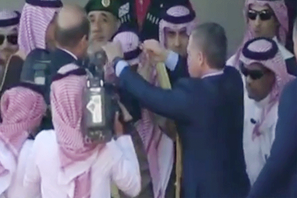 ولدى وصول الزعيمين إلى المنصة الملكية، عزفت الموسيقى السلامين الملكي السعودي والملكي الأردني، فيما حلقت طائرتان عاموديتان تابعتان لسلاح الجو الملكي الأردني تحملان علمي المملكة الأردنية الهاشمية والمملكة العربية السعودية.
