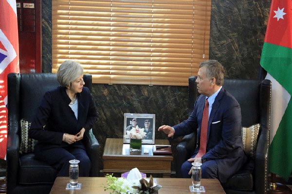 وأعربت رئيسة الوزراء البريطانية تيريزا ماي بدورها عن تقدير بلادها للدور المحوري الذي يؤدّيه الأردن، لتحقيق السلام والاستقرار في الشرق الأوسط.