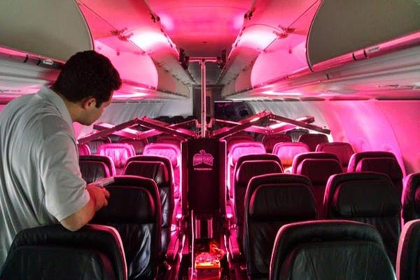 تعترف الشركة أنها نقلت هذه التقنية من المستشفيات ومحطات تعقيم المياه إلى خطوط الطيران. ويعمل الروبوت بوساطة جهاز التحكم عن بعد، أو عن طريقة برمجته للمهمات مسبقًا. وتقول مصادر الشركة إن الروبوت قادر على تعقيم 45 مقعدًا من الجراثيم بنسبة 100 في المئة في دقيقة واحدة.