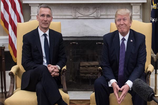 واعتبر ترامب أن الحلف هو "حصن للسلام والأمن العالميين". ترامب الذي سبق له وأن أثار الذعر في أوروبا حين وصف الحلف الأطلسي بأنه مؤسسة "بالية"، قال خلال مؤتمر صحافي مشترك مع ستولتنبرغ إن الحلف "لم يعد باليًا"، لكنه جدد التأكيد على وجوب أن تزيد الدول الأوروبية الأعضاء في الحلف من نفقاتها العسكرية.