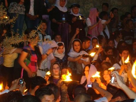 وبلباس أبيض وشعلات نار، احتفل الأيزيديون في معبد لالش بمنطقة شيخان في شمال العراق بعيد "سه رسال" اي رأس السنة الايزيدية التي تبدأ في الاول من شهر نيسان الايزيدي والذي يصادف الاربعاء في 19 ابريل هذا العام.