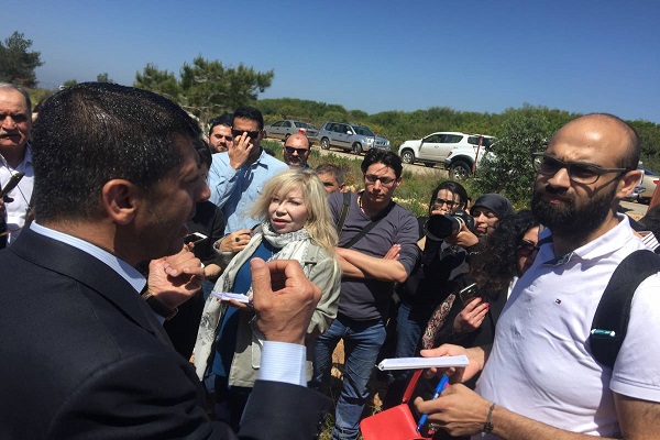 بدأت الجولة من الناقورة الساحلية حيث امكن مشاهدة مقاتلين لحزب الله بزيهم العسكري على طول الطريق مع رايات الحزب الصفراء.
