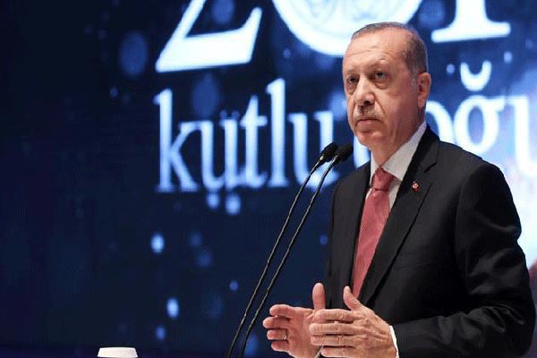 إيلاف: قال أردوغان في كلمة ألقاها خلال مشاركته في فعالية "أسبوع الاحتفال بالمولد النبوي الشريف"، تم تنظيمها في مدينة إسطنبول، احتفاء بميلاد الرسول مساء السبت: "دعهم يقولون إنني ديكتاتور، فنحن لن نبقى صامتين في مواجهة هؤلاء (الظالمين)، لأن رسولنا أمرنا بعدم السكوت عن الظلم".