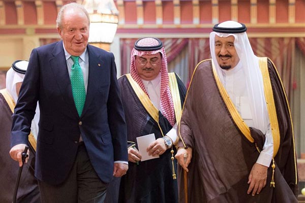 الرياض: استقبل خادم الحرمين الشريفين الملك سلمان بن عبدالعزيز آل سعود، في قصره بالرياض، ملك أسبانيا السابق خوان كارلوس، وفي بداية الاستقبال صافح "كارلوس" الأمراء، ثم أقام خادم الحرمين الشريفين مأدبة غداء تكريمًا لملك إسبانيا السابق.