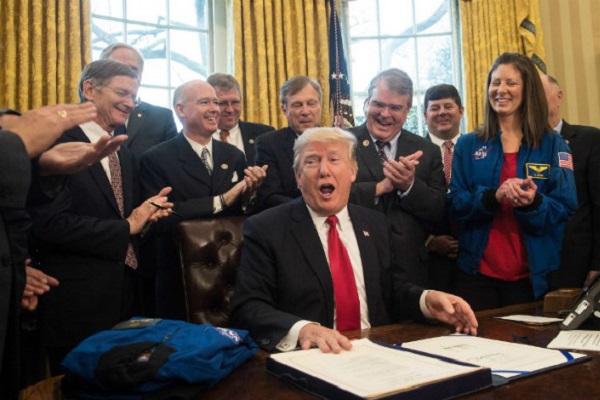 وحين قالت ويتسون في حوارها مع ترامب "مشروع القانون الذي تفضلتم بتمريره"، فإنها كانت تشير بوضوح إلى قانون ناسا للتفويض الانتقالي لعام 2017، الذي مرره الكونغرس ووقّع عليه ترامب العام الجاري. وهو القانون الذي يعنى بإبقاء ناسا على نفس النهج الذي تسير عليه منذ سنوات، حين يتعلق الأمر برحلات الفضاء البشرية، مع استهدافها إرسال بعثة إلى المريخ بعملية إطلاق عام 2033.