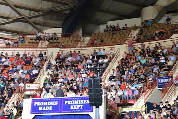 قام الرئيس دونالد ترامب بتكذيب وسائل الإعلام، بالقول إن عدد حضور التجمع، الذي تحدث فيه في ولاية بنسلفانيا السبت، كان غير مسبوق، رغم أن الكاميرات أظهرت مسارات كاملة من المقاعد الفارغة في القاعة، التي كان يلقي فيها كلمته.