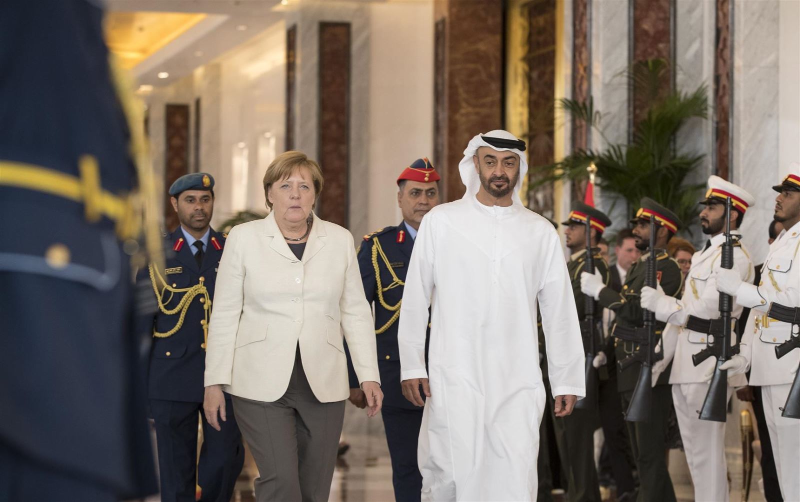 وكانت المستشارة الألمانية أنغيلا ميركل بحثت خلال زيارة إلى أبوظبي الاثنين أزمات المنطقة والتعاون الاقتصادي بين ألمانيا ودولة الإمارات العربية المتحدة. والتقت ميركل في العاصمة الإماراتية الشيخ محمد بن زايد آل نهيان ولي عهد أبوظبي نائب القائد الأعلى للقوات المسلحة، بحسب وكالة الأنباء الرسمية.